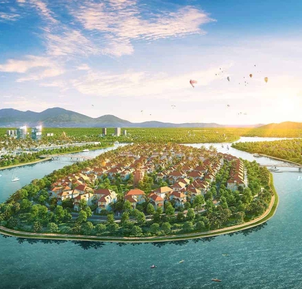 Khu đô thị đảo biệt lập tại Nam Hòa Xuân, gồm 390 sản phẩm như biệt thự đơn lập, song lập, shophouse, tích hợp bến du thuyền và công viên nội khu.