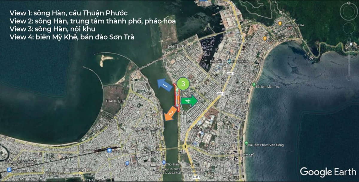 - Tầm view 1: Nhìn về sông Hàn, cầu Thuận Phước.