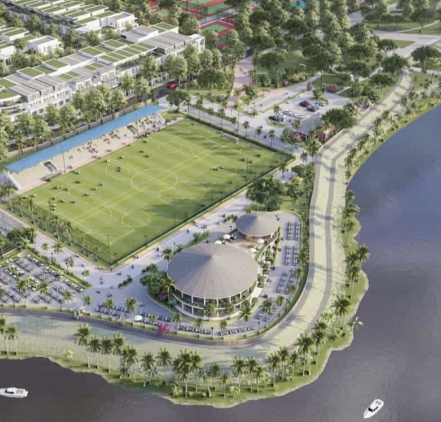 Gồm 586 căn biệt thự và nhà phố ven sông, thiết kế hiện đại, không gian sống gần gũi với thiên nhiên.