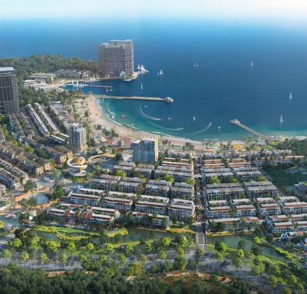 Gồm 586 căn biệt thự và nhà phố ven sông, thiết kế hiện đại, không gian sống gần gũi với thiên nhiên.
